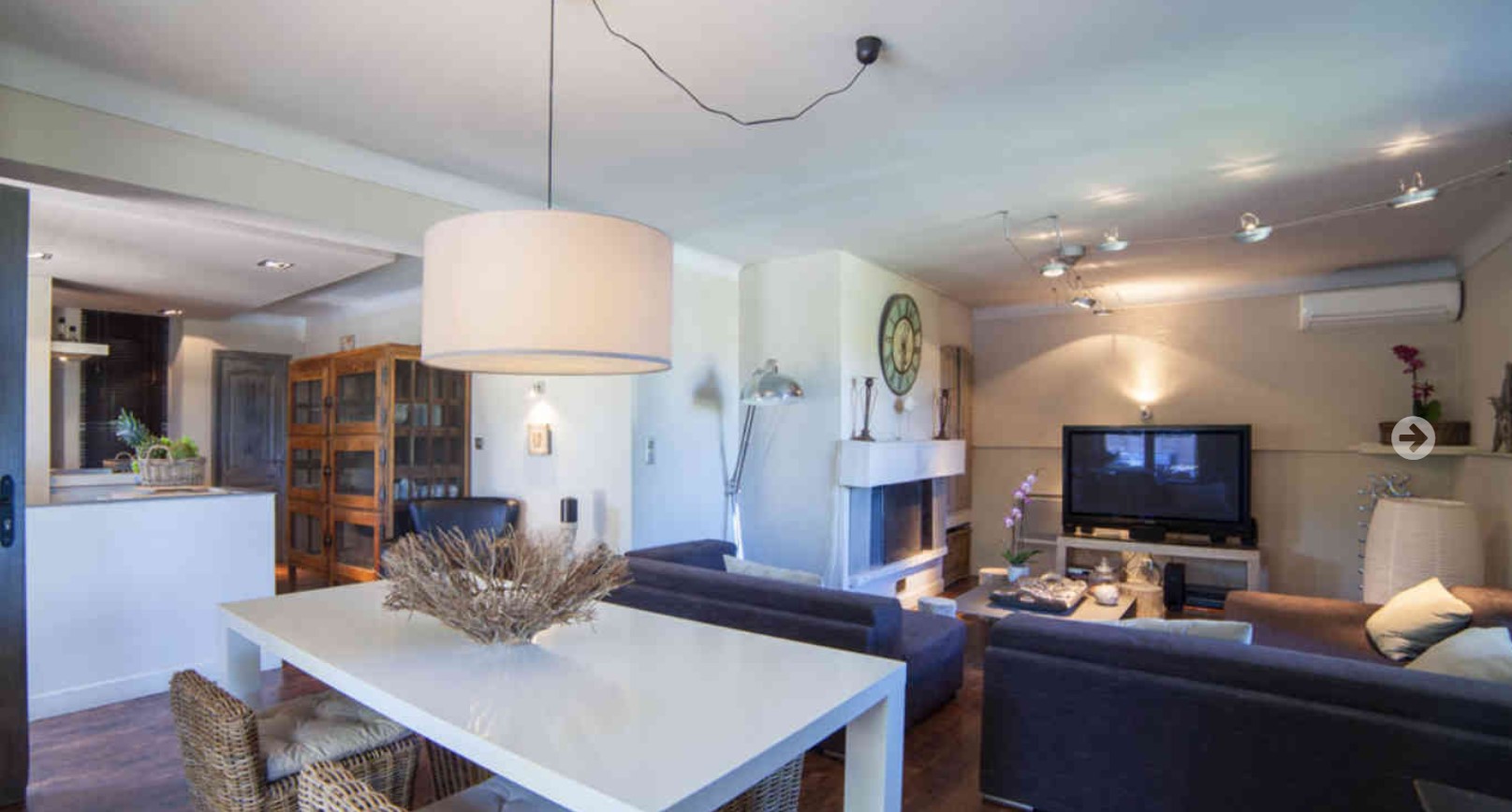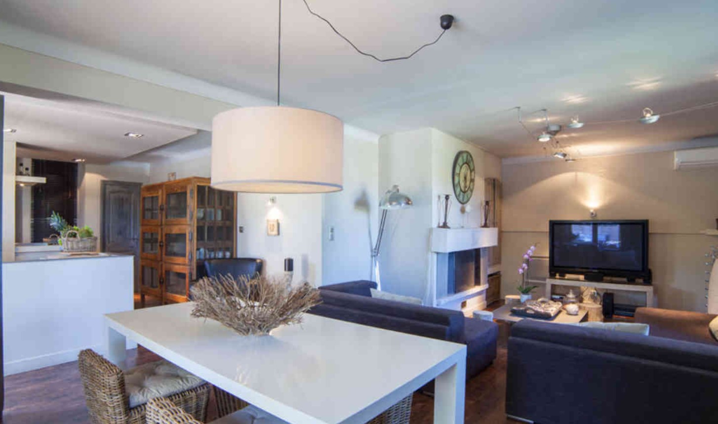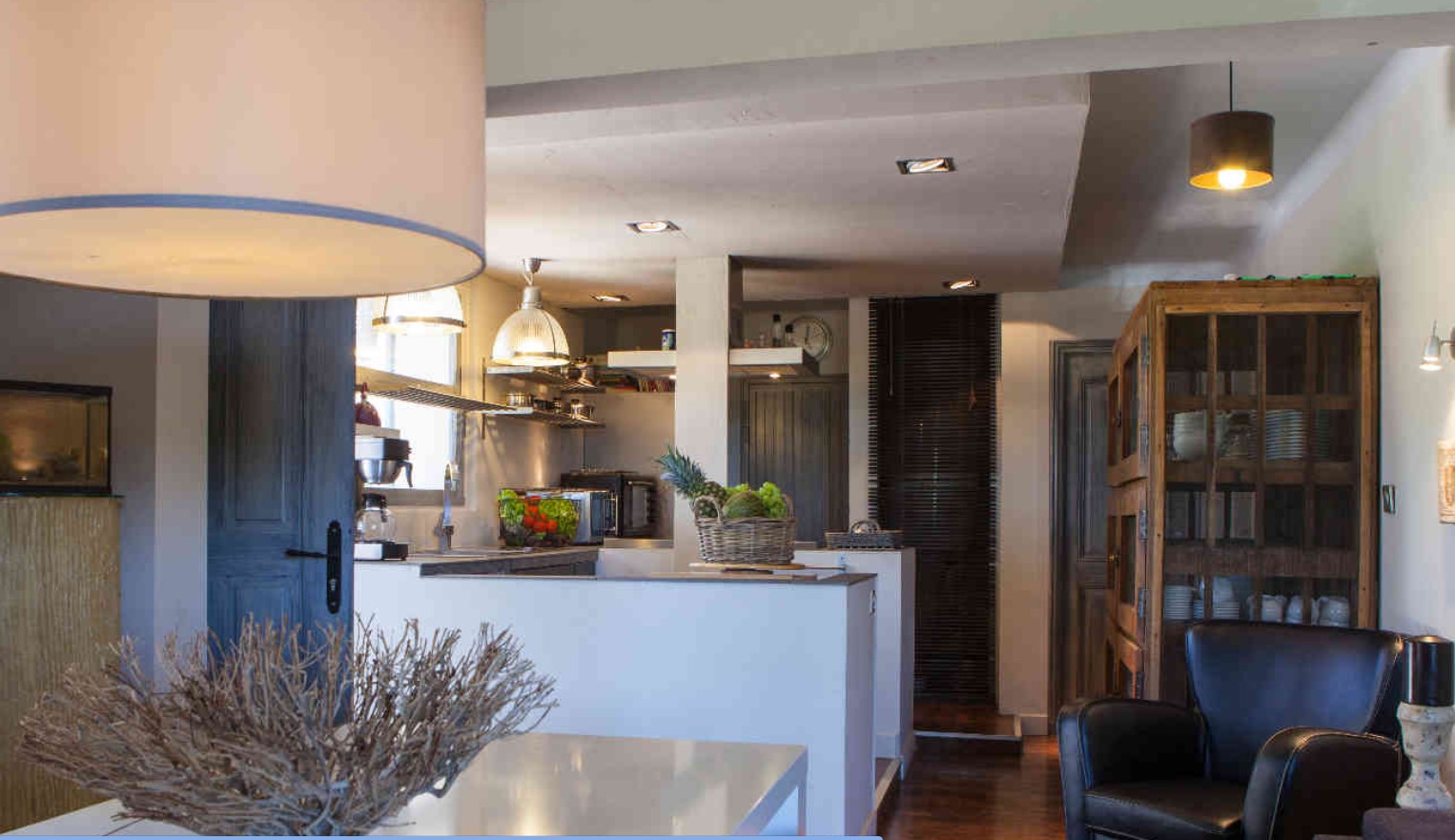 En effet, une belle villa spacieuse avec une cuisine équipée ouverte sur le salon séjour donnant sur le jardin et la piscine. Puis, la salon avec cheminée nous rappelle le charme des maisons en campagne et le décor est intemporelle. Un coin salle à manger pour toute la famille.