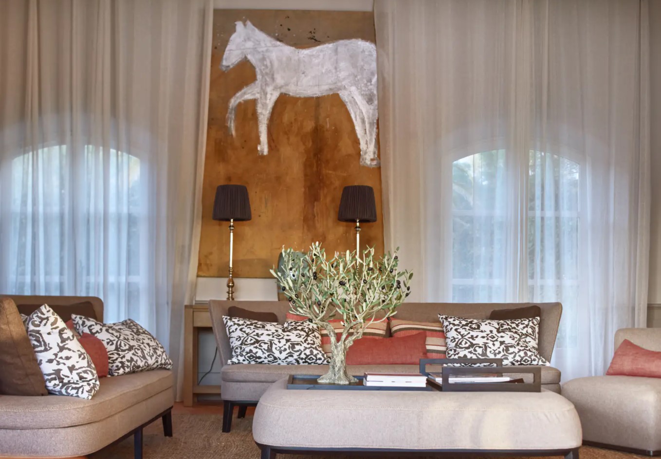 Un immense salon inondé de soleil où se trouvent les canapés confortables de couleur claire idéal pour se détendre. Puis, de grandes chambres colorés et ornées d’armoires blanches qui donnent une ambiance chic et pure. Cette villa dégage un esprit de famille où les divers générations se sont succédées.
