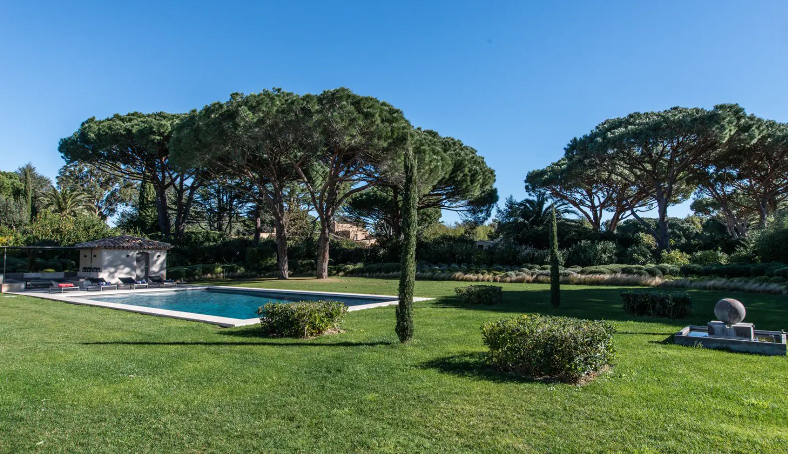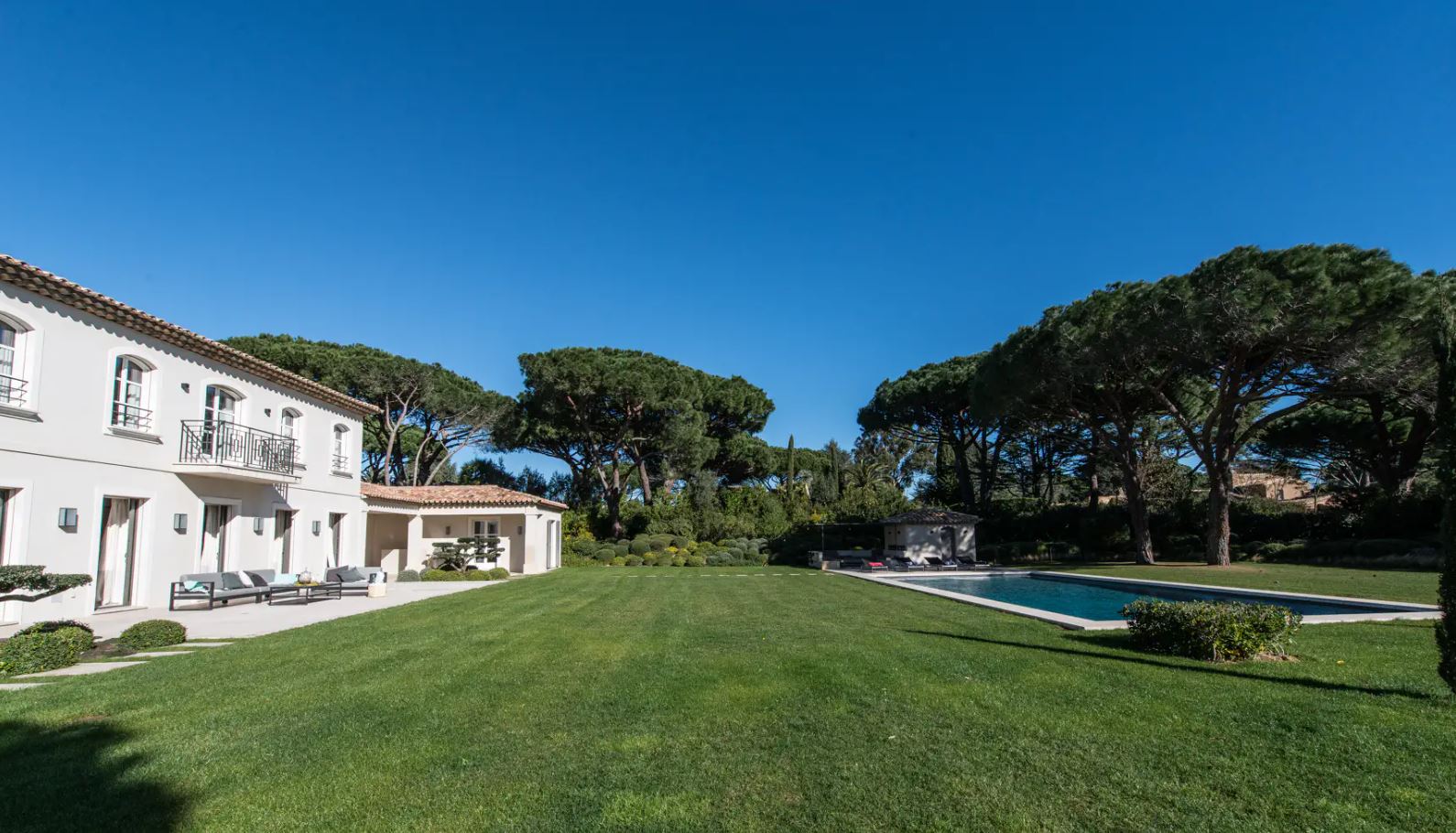 Une belle villa neuve, située dans le domaine privé et prestigieux des Parcs de Saint Tropez. La villa possède un grand jardin plat de 4500m2 avec de nombreux arbres et fleurs.
