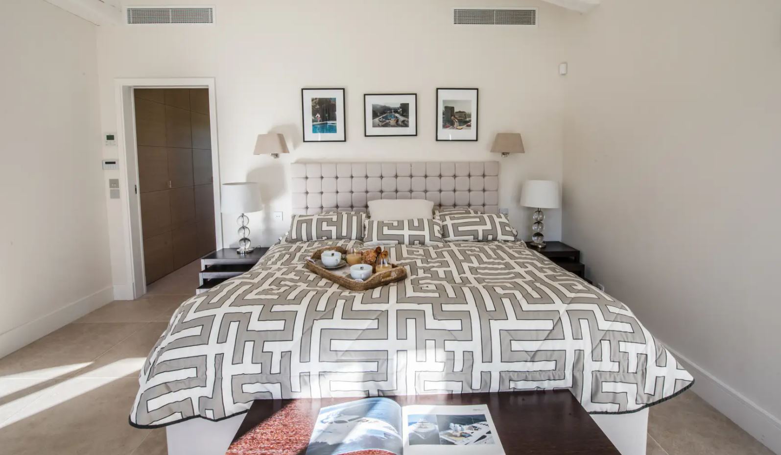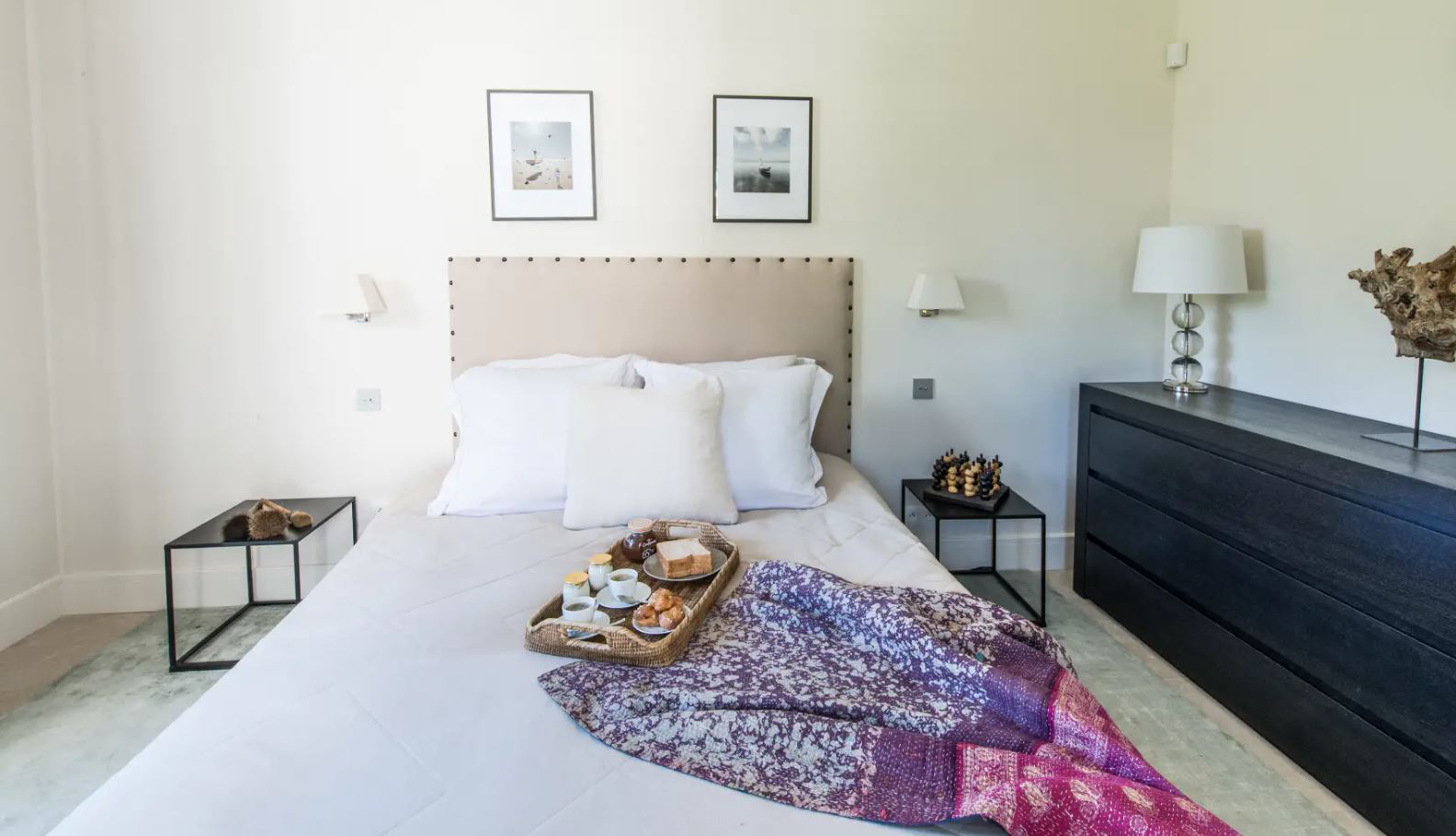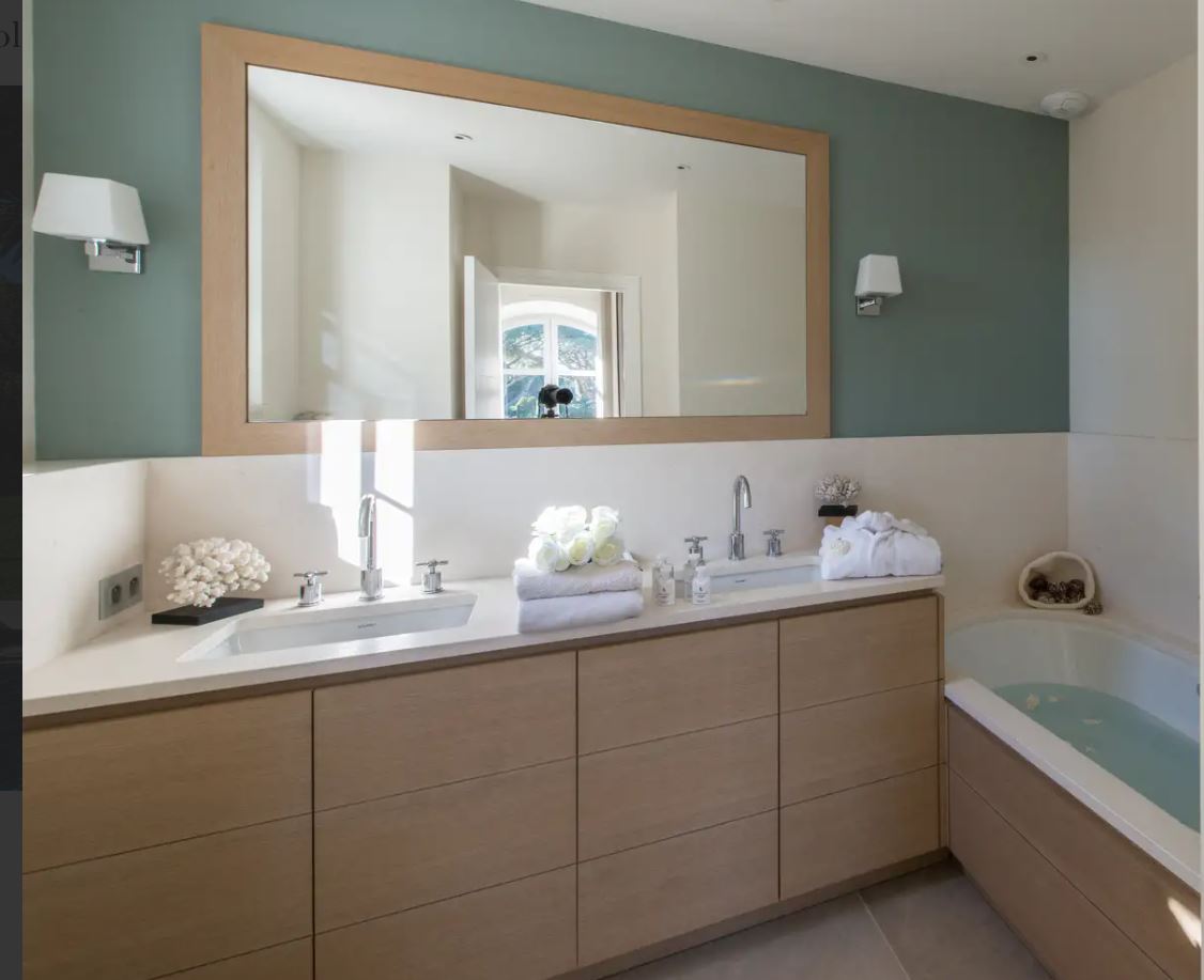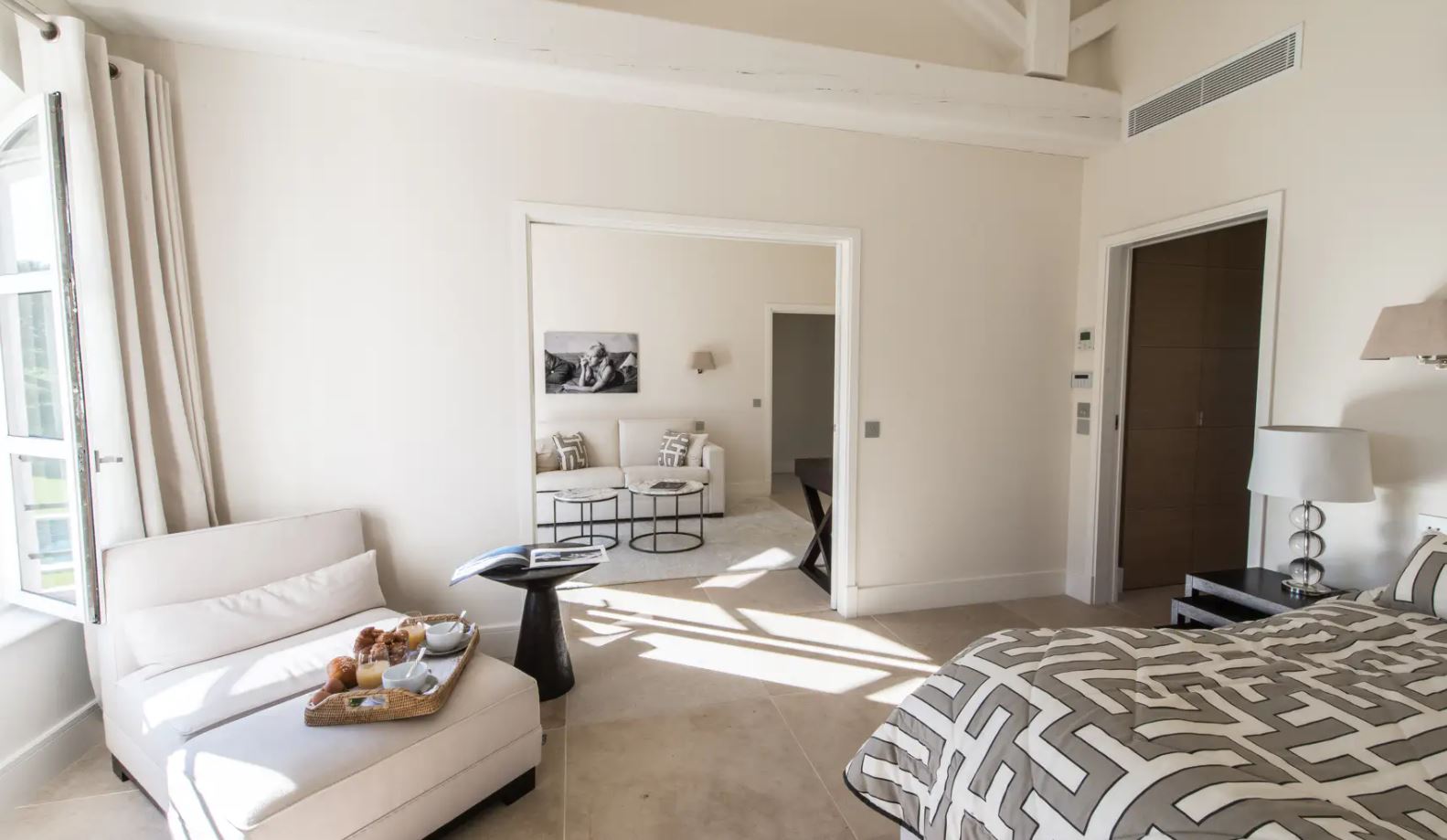 – et de 4 chambres doubles offrant un accès au jardin et aux terrasses, chacune avec sa salle de bain attenante
