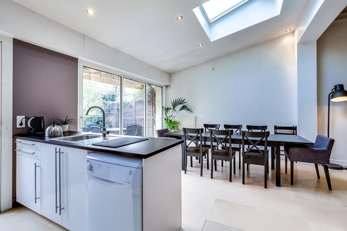 La belle façade en pierre de taille, les hauts plafonds moulurés, les petits balcons en fer forgé : la maison a conservé toutes les caractéristiques des maisons de ville bordelaises. Lorsque vous entrez, vous trouverez une maison chaleureuse et accueillante, meublée avec goût et une élégance discrète, chic et tendance.