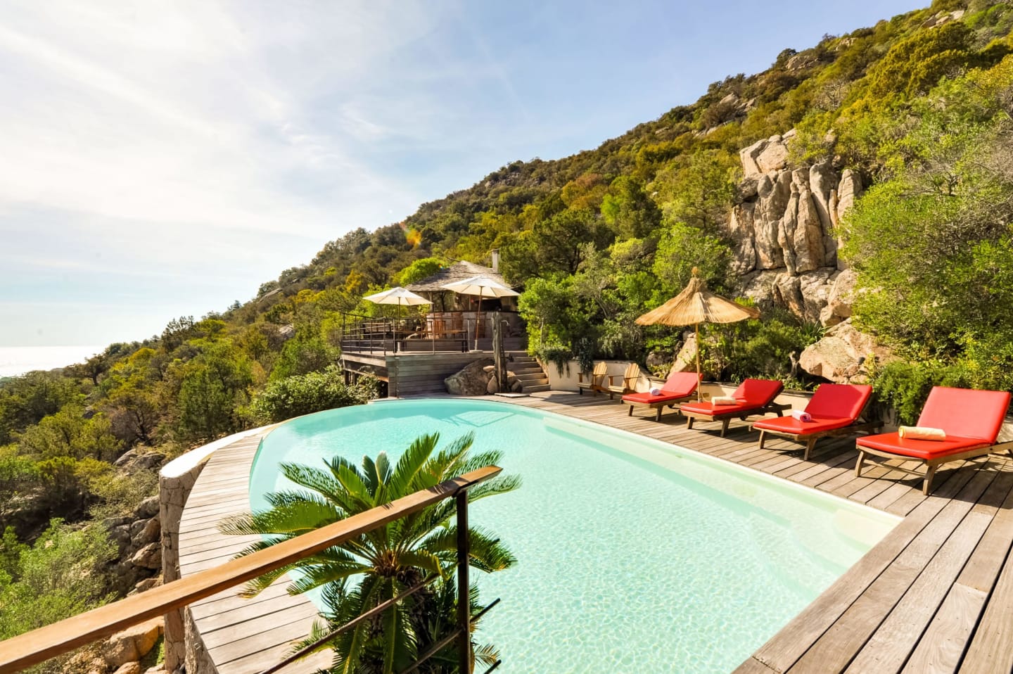Depuis le jardin en terrasse, la vue sur le littoral méditerranéen et accidenté de la Corse est tout simplement exceptionnelle!