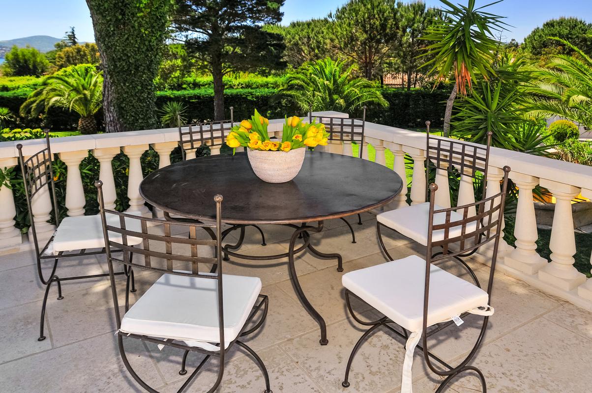 Villa de luxe à Ste Maxime proche de St Tropez. Cette élégante villa avec 4 belles chambres, un seul niveau de plain pieds, se trouve sur un terrain magnifiquement entretenu avec vue sur le golfe de St Tropez . La villa est luxueuse et élégante, décorée dans des couleurs fraîches avec des sols en pierres et de grandes fenêtres donnant sur la baie.